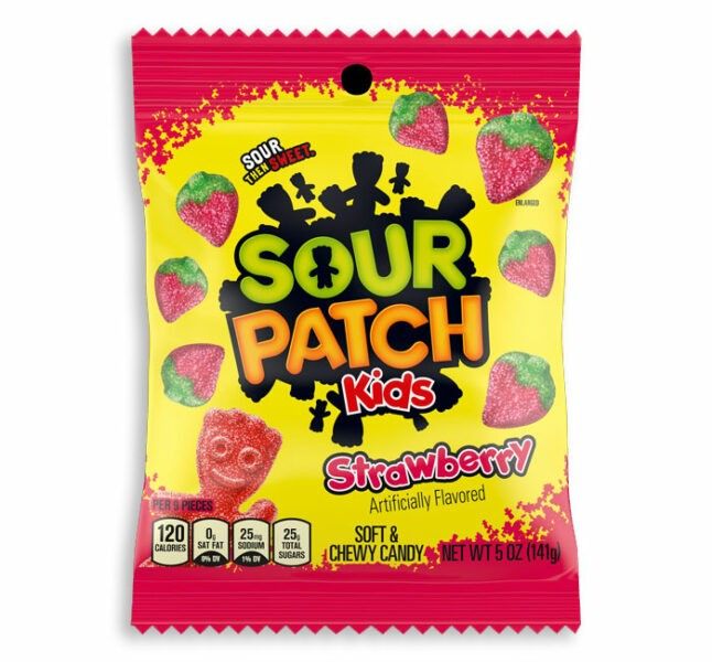 Strawberry Sour Patch Kids: Sweet, juicy strawberry flavor with a tangy, sour twist.